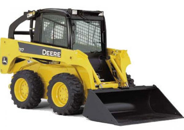 Powerful: The 317D uses an Interim Tier 4 John Deere Power tech 4024T 45 hp 33.5 KW engine. It has approximately 10 horsepower over the two sizes down, the 313D and 315D skid steers. This makes it a good choice for bigger jobs.